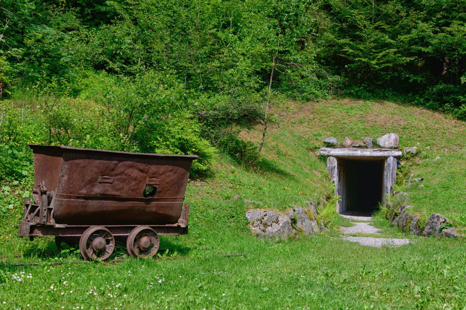 Nach der Rast wandern wir durch den Wald weiter zur Friedrich-August-Grube. Hier wurde bis 1908 u.a. Nickel abgebaut. Das Stollenmundloch wurde wieder hergerichtet und ist begehbar. Die Umgebung wurde als Rastplatz gestaltet.