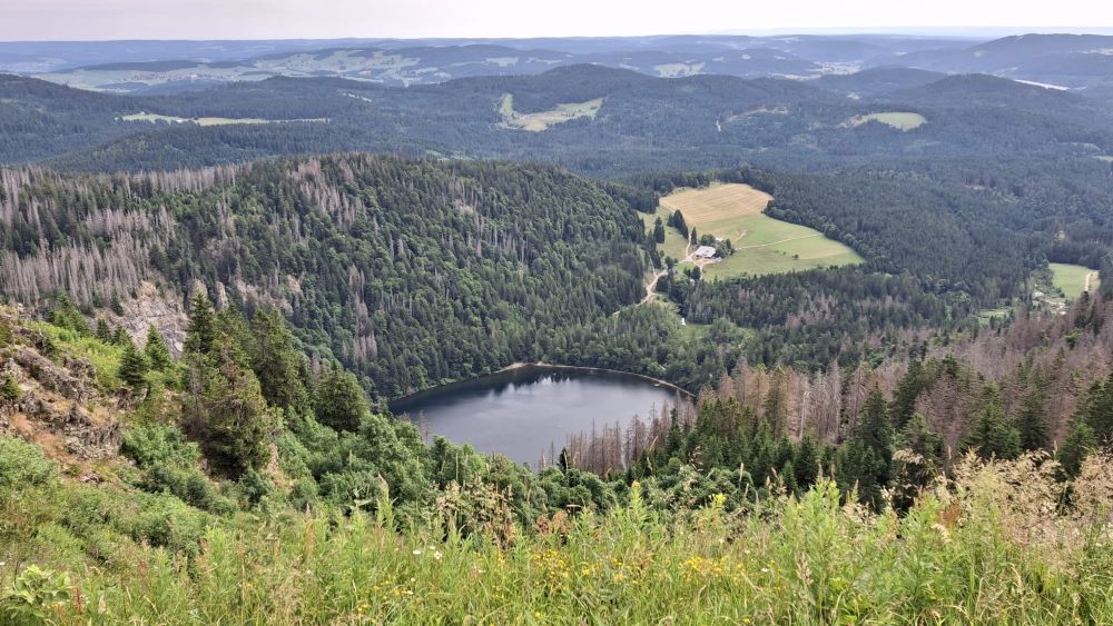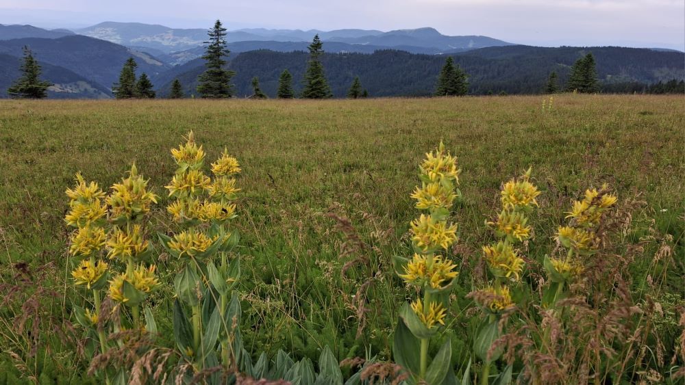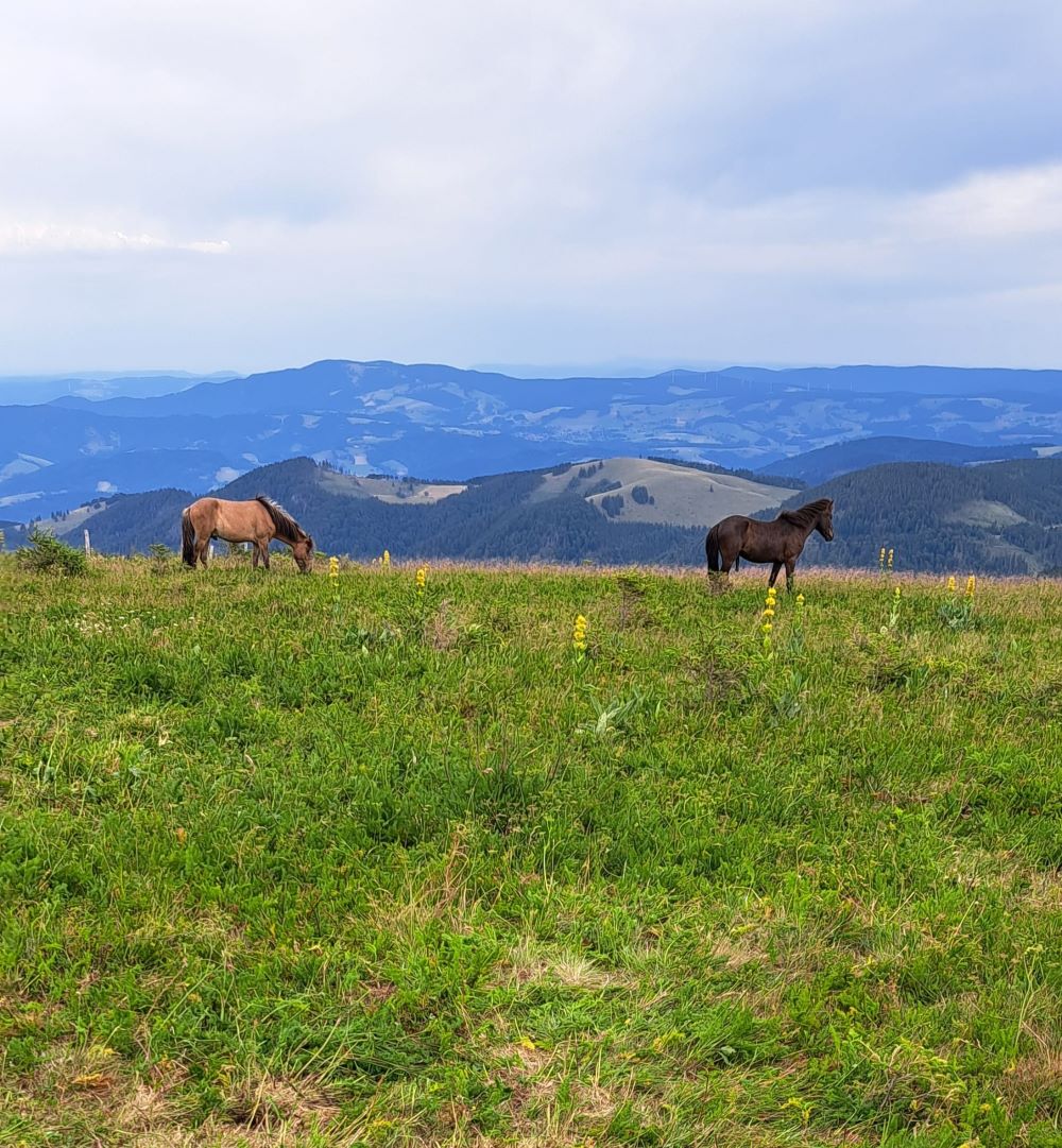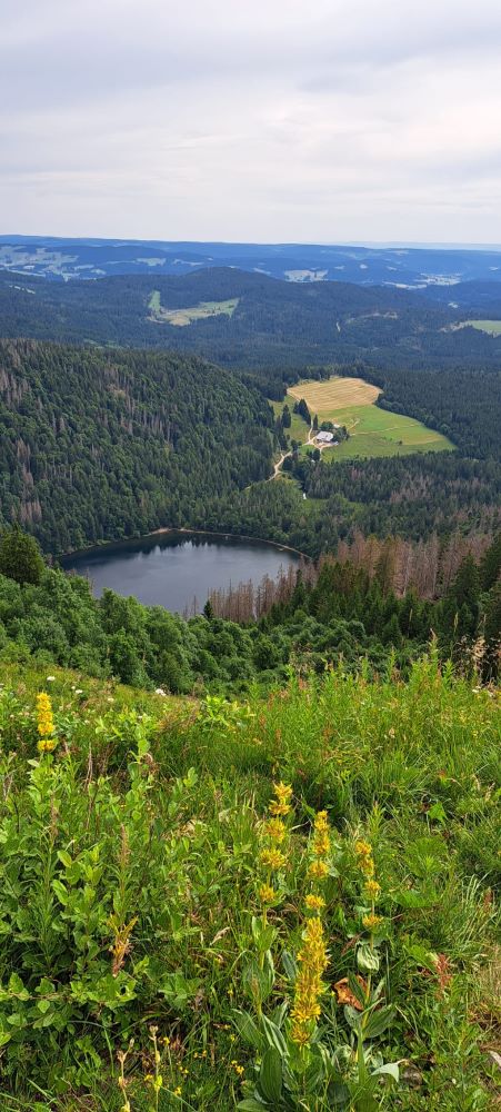 Die Route führte uns über abwechslungsreiche, meist trockene Pfade, auf denen unsere Wanderstöcke gute Dienste leisteten. Die Natur präsentierte sich in voller Pracht: Gelber Enzian blühte am Wegesrand, und auf den Weiden begegneten wir friedlich grasenden Kühen – ein echtes Schwarzwaldidyll.