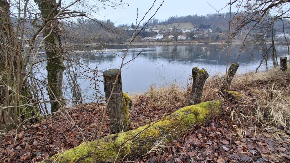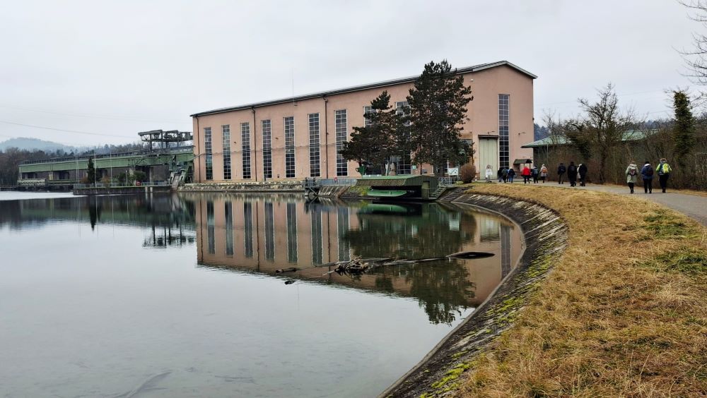 Von der Brücke aus gingen wir dann relativ zügig am Ostufer entlang und erreichten nach einer guten halben Stunde das Kraftwerk. Wir ließen das Kraftwerk links liegen und wanderten auf schmalen Pfaden entlang der Aare bis zur Mündung in den Rhein bei Felsenau. Dort bildet eigentlich die Aare den hydrologischen Hauptstrang, weil sie deutlich mehr Wasser mit sich bringt als der Rhein an dieser Stelle.