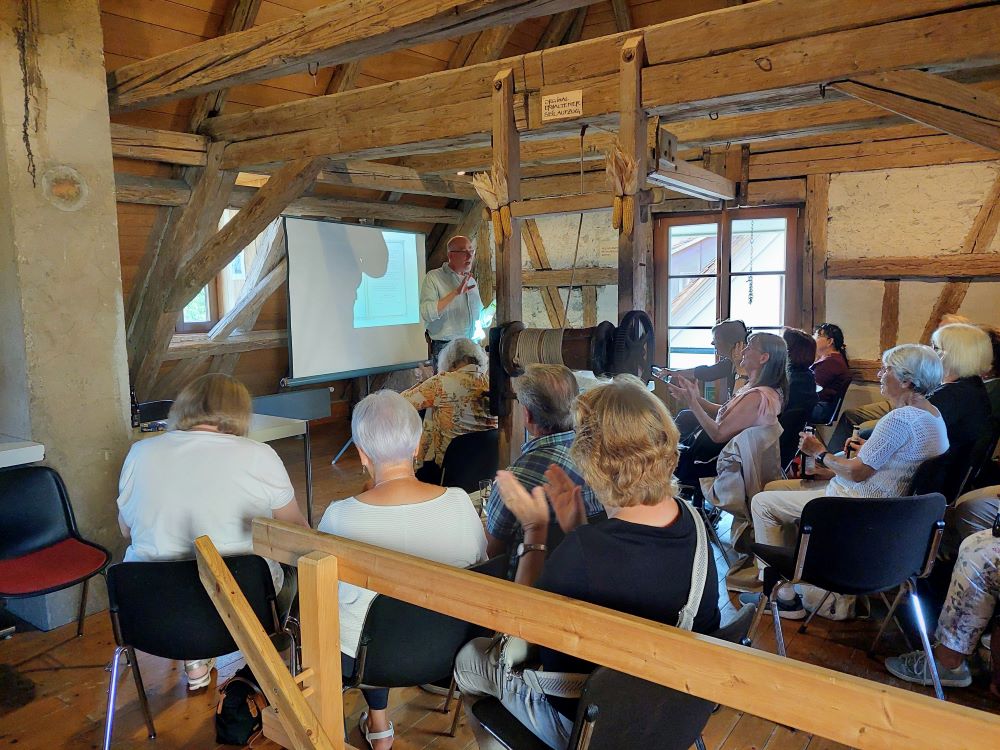 umfassend informiert waren, wurden dann auch die Räume des 600 Jahre alten Hauses begutachtet. Zum Abschluss gab es dann noch ein ausgiebiges Speck- und Wurstvesper zur Stärkung. Auf der Heimreise mit dem Bus wurde dann noch ausgiebig über all die neu gewonnenen Erkenntnisse getrascht. (Zum Beispiel: wo die Seele sitzt – dies versteht nur, wer dabei war)