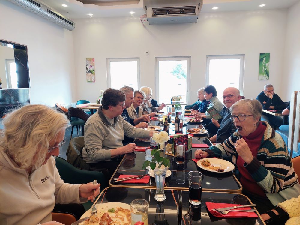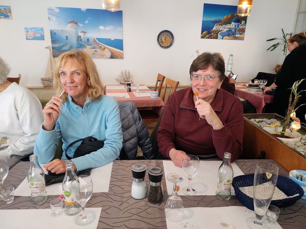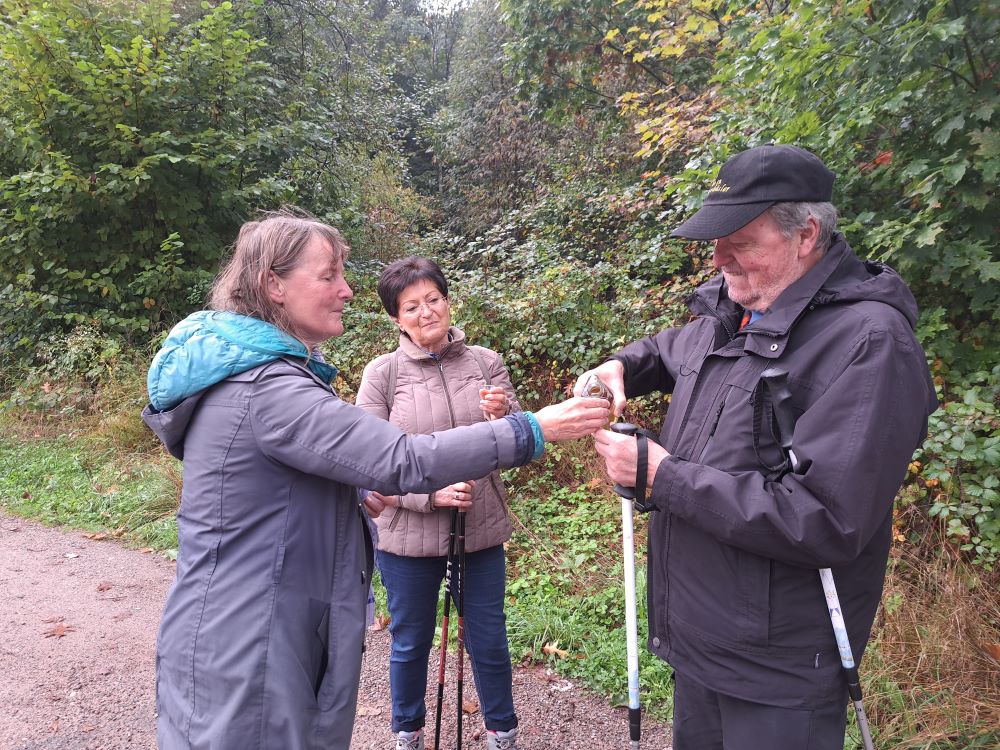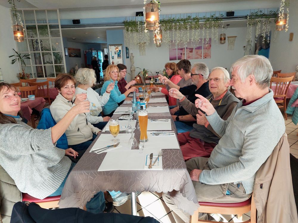Nach dem Mittagessen kam dann die Sonne raus. Bevor wir die Heimreise mit dem Bus angetreten haben, wurde dann noch auf die Freundschaft unter Wanderfreunden angestoßen. Herzlichen Dank an Wanderführerin Renate Schempp für die schöne Tour.
