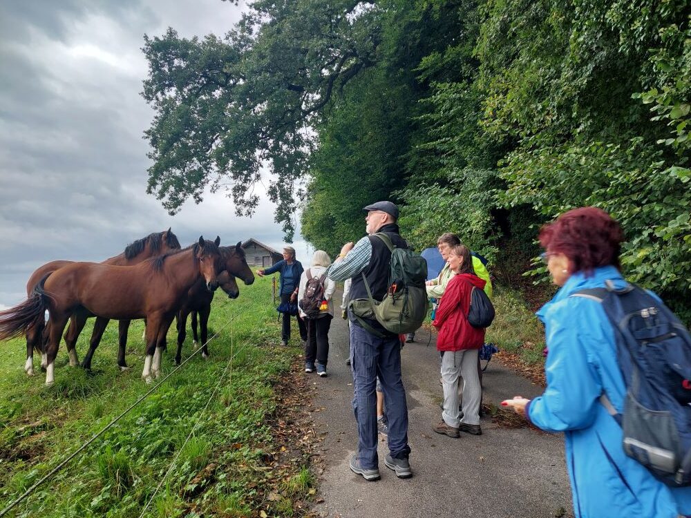 Die erste Donnerstagwanderung im August führte von Rippolingen über Harpolingen und Lochmühle nach Murg. Bei bestem Wanderwetter ging es für 18 Wanderfreunde zunächst bei herrlichem Panoramablick vorbei an Alpakas und Lamas nach