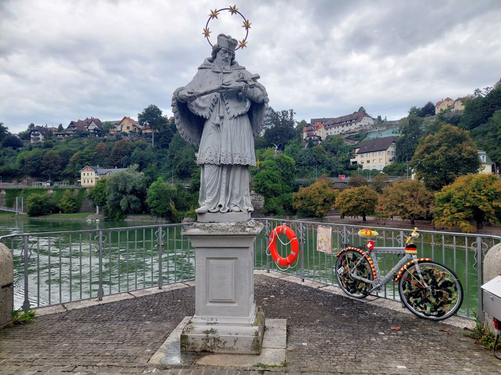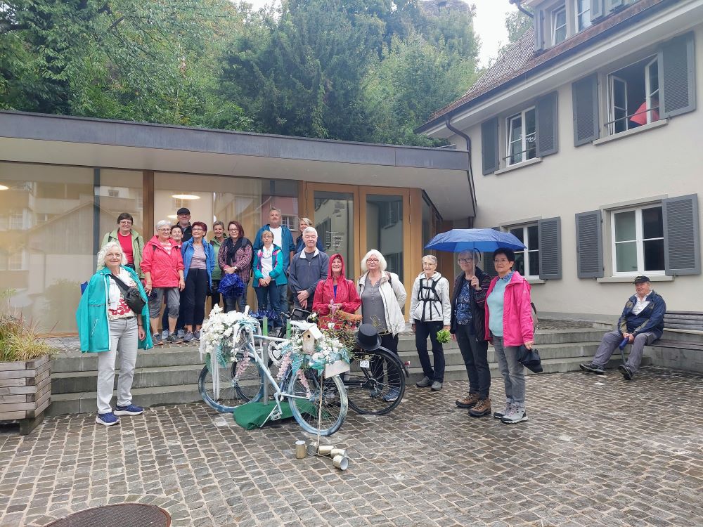 19 Wanderfreunde hatten trotz immer wieder einsetzendem leichten Nieselregen eine schöne Wanderung auf überwiegend Schweizer Staatsgebiet. Beeindruckend waren die hübsch geschmückten Fahrräder, die überall verteilt in der Partnerstadt aufgestellt waren. Zunächst wurde die Altstadt von Laufenburg/Schweiz etwas näher kennengelernt. Nach anschließender erholsamer Tour auf Waldwegen ging es zum Mittagessen ins Gasthaus „Rebstock“. Immer wieder kam dann auch die Sonne kurz zum Vorschein. Nach einem leckeren Schmaus wurde die Heimreise mit dem Bus angetreten.