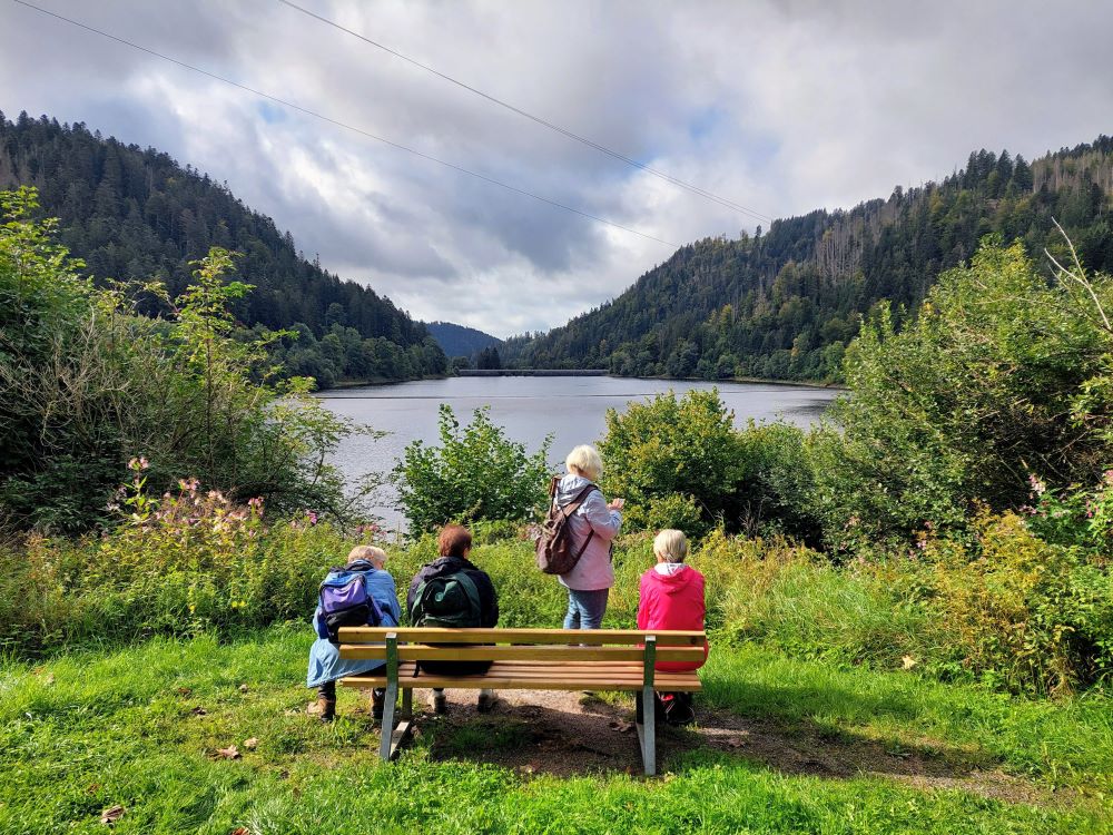 Vom Domplatz aus ging es zunächst für 14 Wanderfreunde in Richtung Albstausee. Dort angekommen wurde erst einmal eine kleine Pause eingelegt und der Blick auf den Stausee genossen. Nach Überquerung der Brücke ging es auf der anderen Stauseeseite wieder zurück nach St. Blasien. Dort angekommen wurde in der Pizzeria „Tränke“ italienisch geschlemmt. Nach dem Essen wurde der Dom besichtigt und eine kleine Stadtvisite eingelegt. Natürlich durfte dabei ein leckeres Eis nicht fehlen. Zurück ging es dann mit dem Bus über so ziemlich jedes kleine Kaff, das es im Hotzenwald gibt nach Laufenburg und dann mit dem Zug weiter nach Bad Säckingen. Dabei haben wir auf der Bahnstrecke einen kleinen Stopp einlegen müssen. Es gab wohl irgendwo ein Problem auf der Strecke. Nach einigen Minuten Wartezeit ging es dann aber wieder weiter.