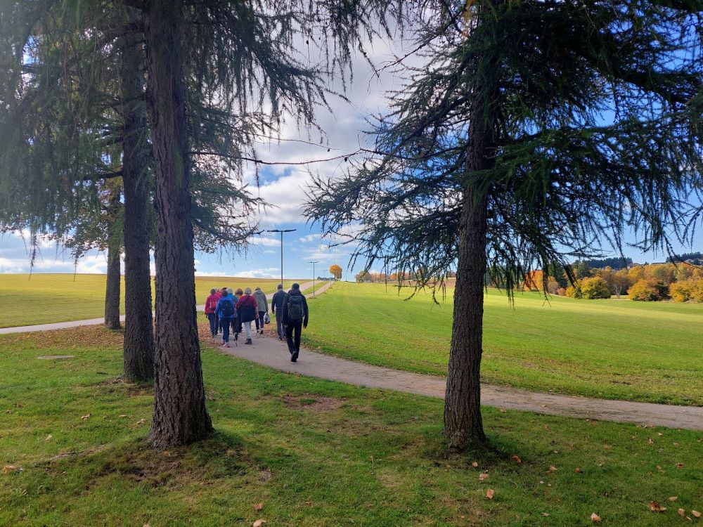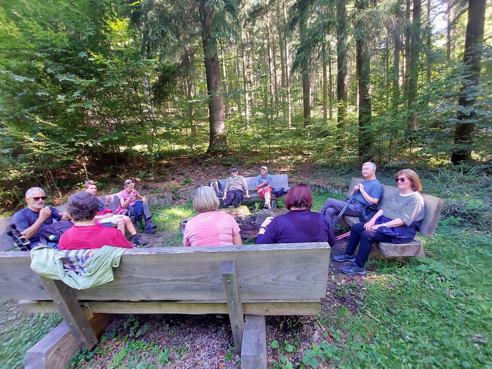Eine kleine Gruppe von 11 Wanderfreunden haben sich gutgelaunt auf den Weg von Willaringen zum Dekalogplatz gemacht. Zunächst ging es durch den Wald und dann an der Wuhre entlang Richtung Bergalingen. Dann setzte immer wieder einmal leichter Regen ein, der uns veranlasste kurz unterzustehen. Beim Dekalogplatz angekommen, war aber schon wieder alles trocken und die Vesperpause konnte problemlos vorgenommen werden. Danach ging es zurück nach Bergalingen und dann mit dem Bus weiter nach Bad Säckingen. Dort traf sich die Wandergruppe noch im Schloss-Cafe zum Kuchenverzehr. Weil es so schön war, blieben wir dort auch eine ganze Zeit lang sitzen und haben uns dabei prächtig unterhalten.
