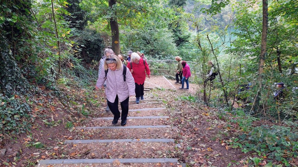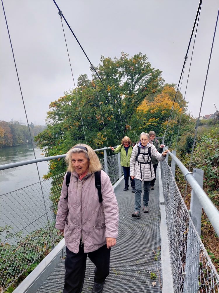 19 Donnerstagswanderer haben am 09.10.25 ihre Wanderung auf der „Laufenburger Acht“ durchgeführt. Bei bedecktem Himmel ging es zunächst über die Steinbrücke auf Schweizer Gebiet und beim Kraftwerk wieder auf die deutsche Seite. Nachdem die „Wackelbrücken“ von allen problemlos überquert waren, ging es dann erneut über die Steinbrücke wieder in die Schweiz und diesmal in die entgegengesetzte Richtung. Etwas später wurde die Autobrücke überquert und dann wieder im Heimatgefilde das Gasthaus „Alte Post“ aufgesucht. Gut gestärkt ging es dann zum Bahnhof, wo noch ein „kleines Verdauungsschnäpschen“ vor der Rückfahrt eingenommen wurde.