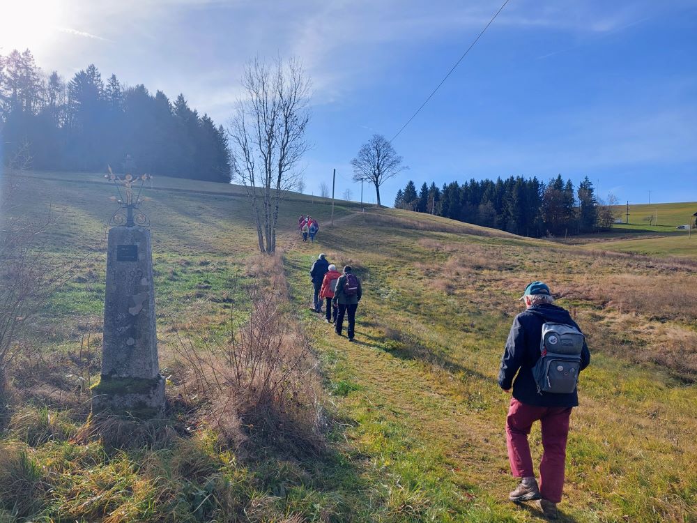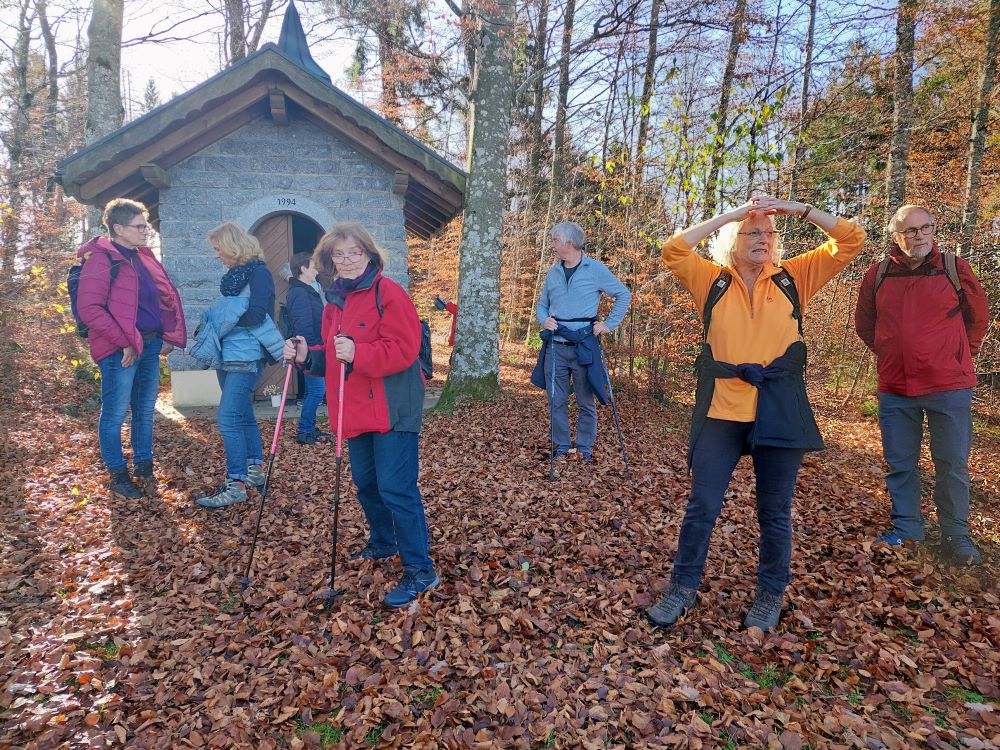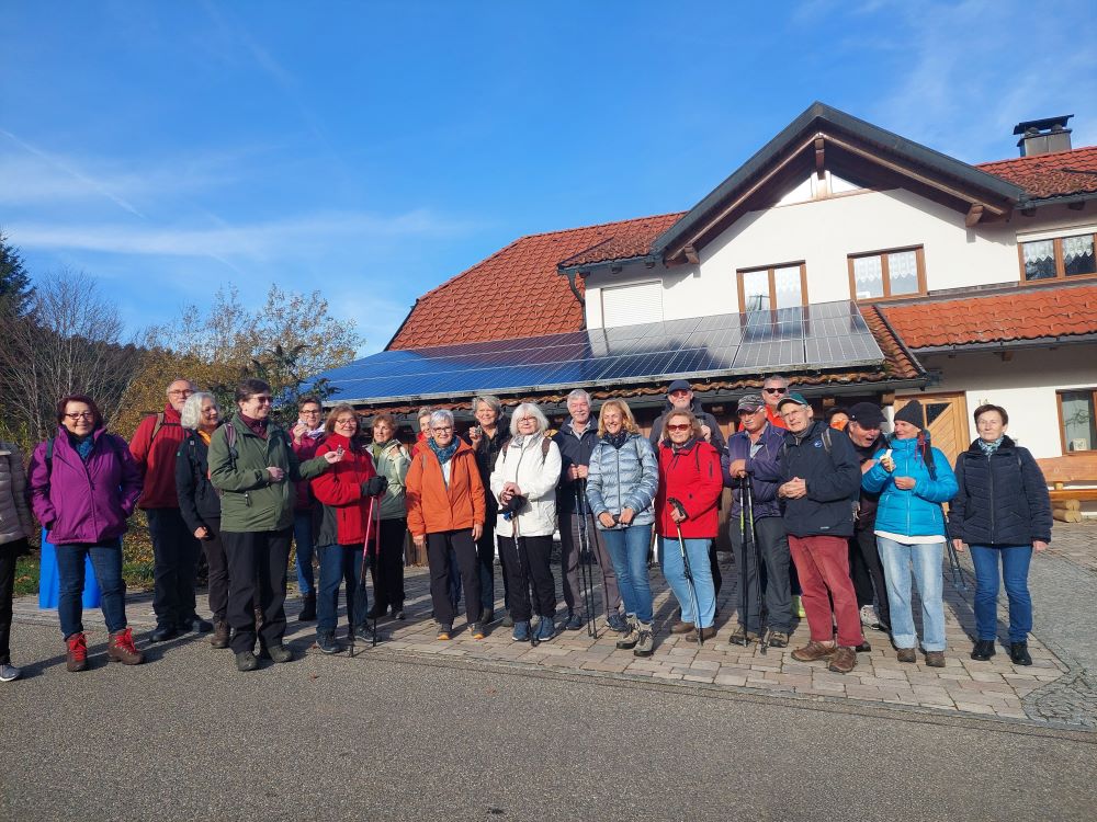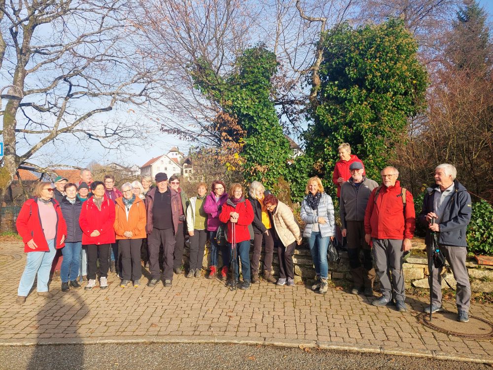 Eine stattliche Anzahl von 24 Donnerstagswanderern hat am 13.11.25 von Herrischried-Lochmatt aus die Wanderung nach Rickenbach angetreten. Bei bestem Wanderwetter ging es zunächst über Niedergebisbach zur Marienkapelle auf den Totenbühl, wo uns Wanderführerin Beatrix so manches Interessantes darüber berichtete. Weiter ging es über Altenschwand nach Rickenbach. In der Gaststätte „Il tulipano“ haben wir der Wirtin ob der großen Anzahl an Wanderern einen kleinen Schrecken bereitet. Mit etwas Wartezeit wurde aber bei jedem Wanderfreund der Hunger gestillt. Gut gelaunt ging es mit dem Bus auf den Heimweg.