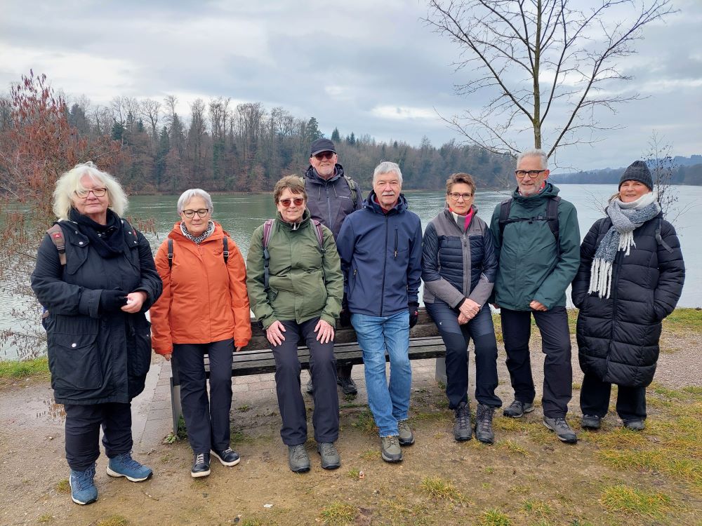Aufgrund des vorangegangenen tagelangen Regenwetters wurde nicht über den Rheinsberg gewandert, sondern die trockenere Variante am Rhein entlang gewählt. 9 Wanderfreunde hatten trotz des tristen Wetters Spaß beim Wandern und auch beim Essen im Bistro von Möbel Brotz beste Laune. Gut gestärkt ging es mit dem Bus zurück in die Heimat, wo kurz nach unserem Eintreffen dann leichter Regen einsetzte. Über so ein paar Wassertröpfchen kann ein echter Donnerstagswanderer aber nur milde lächeln.