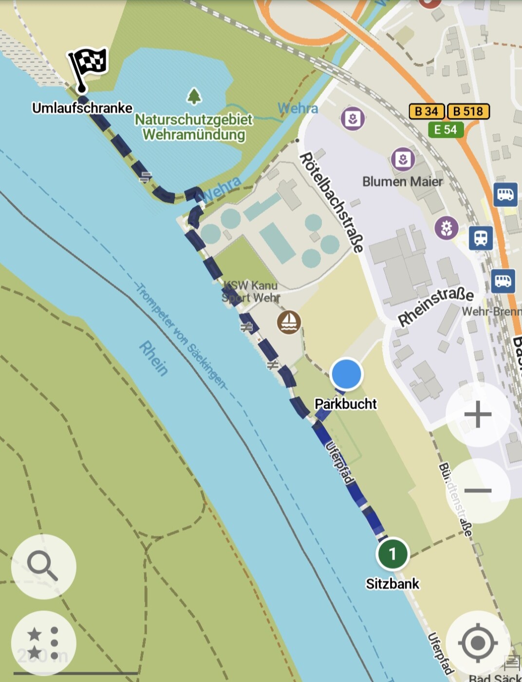 Vom Parkplatz in der Nähe des Badestrands gehen wir ein kurzes Stück hinunter zum Rhein. wir biegen rechts ab und bewegen uns in richtung Wehramündung bis zum Holzturm. Von dort aus kann man die Wehra auf einer Brücke überqueren und im anschließenden Naturschutzgebiet Wasservögel aller Art beobachten. Derselbe Weg führt uns wieder am Rheinufer zurück. am Badestrand kann auf einer der zahlreichen Bänke eine Pause eingelegt werden, bevor es zurück zum Pakrplatz geht.