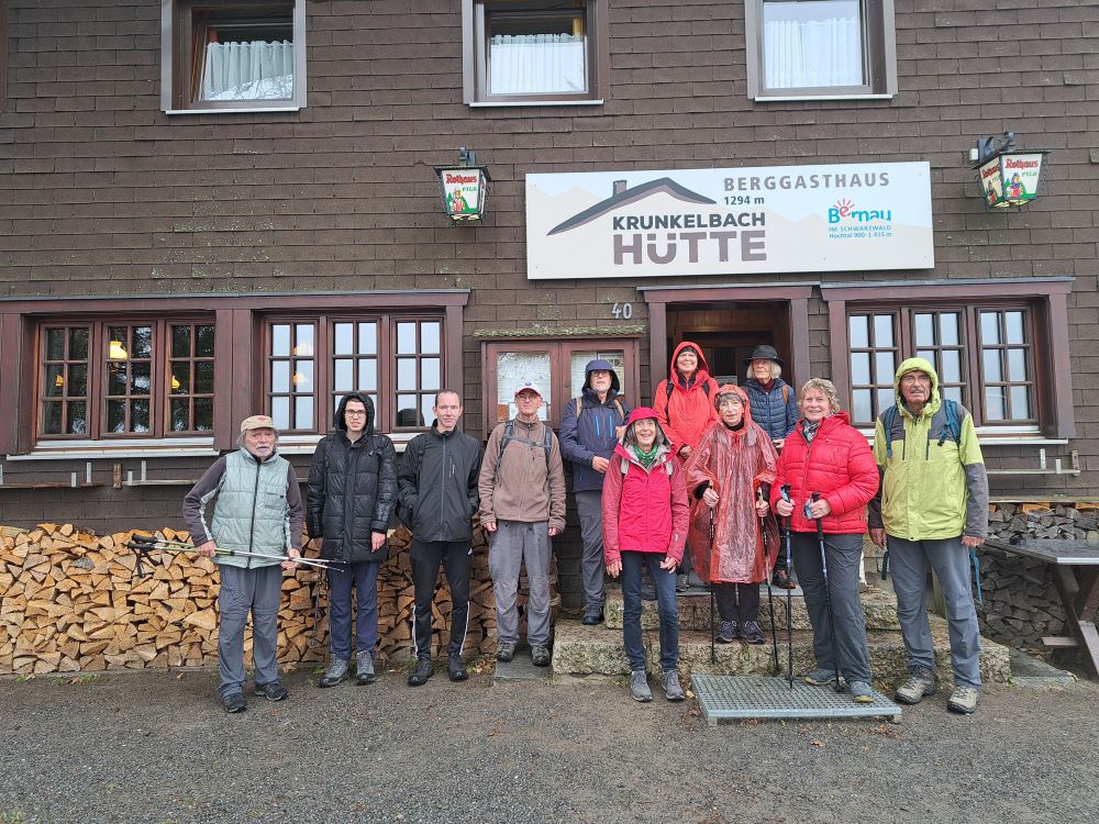 Am Treffpunkt waren heute 14 Mitwanderinnen und Mitwanderer noch guten Mutes, dass sich unser Ziel, die Krunkelbachhütte, im Sonnenschein präsentiert. Auch am Parkplatz des Campingplatzes in Bernau-Innerlehen, konnten wir sogar blauen Himmel bewundern.